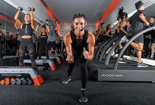 Shred415 is a high-intensity interval training group fitness class. What does that mean? You will experience bursts of intense movements both on the treadmill and floor to get your heart rate high, followed by recovery exercises to lower your heart rate back down. HIIT is great for cardiovascular conditioning and building muscle endurance. At Shred415, half of your time is spent on a treadmill in organized running/walking drills, and half of your time is spent on the floor with dumbbells doing organized strength training moves. And the best part? The lights are low and the music is pumping so there is lots of energy to keep you moving! It's an extremely effective workout that will keep you burning calories all day long!