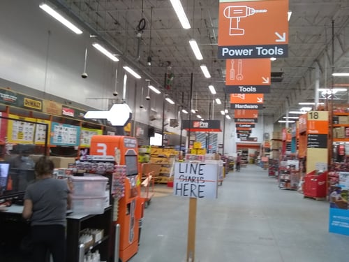 Nearby stores include The Home Depot, Big Lots discount store, Albertsons grocery store, and Mattress Firm furniture store.