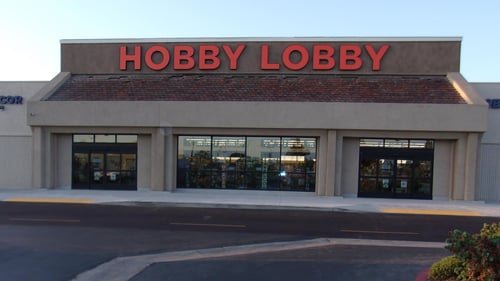 Are there any grocery or department stores close to Hobby Lobby for convenient shopping?