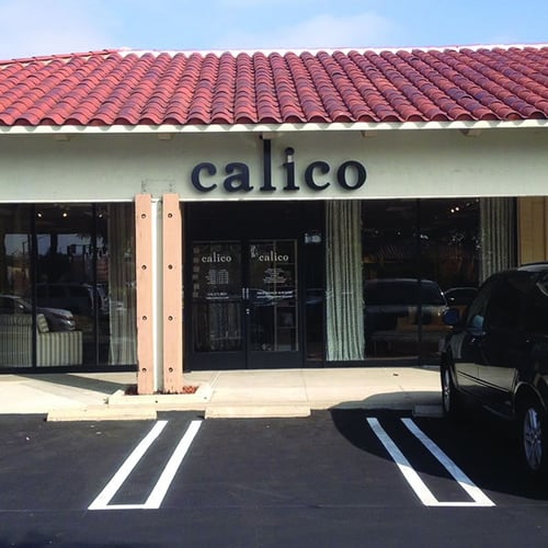 Calico offered custom drapes, shades, valances, chairs, sofas, furniture reupholstery, decorative fabrics, Hunter Douglas blinds and shades, window hardware, wallpaper, custom cushions and pillows, and more.