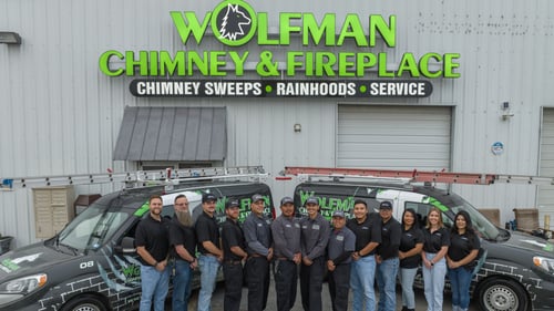 Wolfman Chimney & Fireplace offers chimney sweeping, safety inspections, relines, new installs, rebuilds, wood stove installs, gas logs, custom caps, dampers, dryer vent cleaning, and masonry repairs.