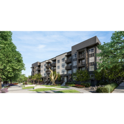 Apartments feature quartz countertops, a choice of black, gold, or chrome hardware, soft-close cabinetry, stainless steel appliances, smart thermostats, and keyless entry. Select units also include beverage coolers and dry bars.