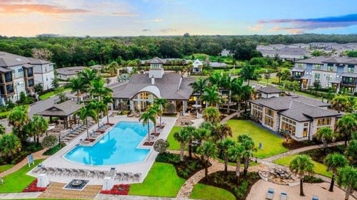 The community features lush grounds, world-class amenities including a swimming pool, fitness center, community garden, and a yoga lawn for residents to enjoy.