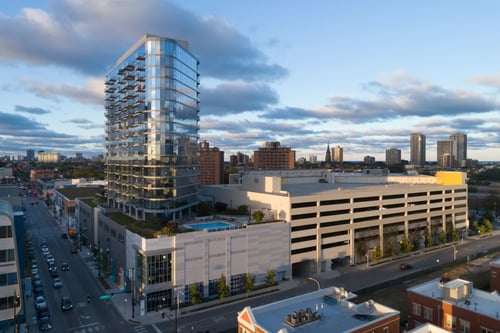 Free guest parking, a quiet neighborhood, and Mariano’s and AMC theatres are in complex. I had an amazing view. The management team was responsive to every request.