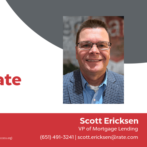 Scott Ericksen is your Wayzata local lender. As a loan officer at Rate, one of the largest retail mortgage lenders in the United States, Scott is committed to helping homeowners with home purchase loans and refinances, while simplifying the mortgage process and making your home loan experience easy to navigate. Contact Scott at (651) 491-3241 for more information!