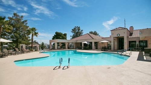 This gated 55+ retirement mobile home community offers you an oasis in the middle of the hustle and bustle that is the Las Vegas metro area. Located in world-famous Las Vegas, NV, Flamingo West features a fully outfitted fitness center to help you maintain a healthy lifestyle, a spacious clubhouse for hosting your social events, and a community swimming pool to help you cool off on those long summer days. There is also a wealth of community organized activities to help you engage with your neighbors, and local area shopping and dining is a mere 2 miles away for your convenience. On-site management also adds to your peace of mind in this pet friendly community, so call today to find out more!