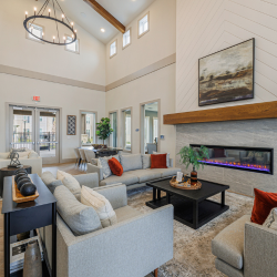 Siena Round Rock Apartments offers a resort-style swimming pool and cabana, barbecue areas, private dog yards, a large dog park, a resident clubhouse, fitness center, yoga space, and on-site storage facilities. Smart home features include Ecobee Smart Thermostats, August Smart Locks, Wi-Fi Light Switches, and Ring Doorbells, all controlled by Amazon Echo.