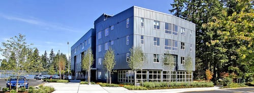 Rainier Place, on Edmonds Community College campus, provides student apartments in Lynnwood. On-site laundry, game and media spaces, and a full kitchen.