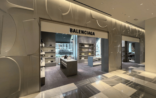 What categories of stores does BALENCIAGA fall under?