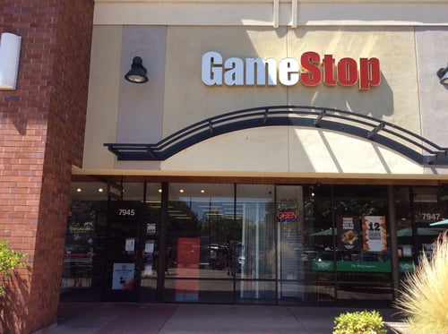 Is GameStop located near any food options for gamers who want a meal before or after shopping?