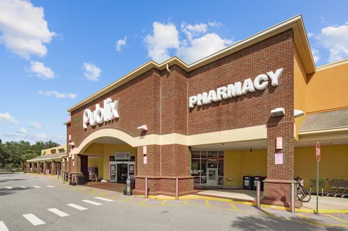 This strip mall offers several options and a variety of shops and services, including nail salon, pet salon, brunch place, insurance shop, and Publix and pharmacy.