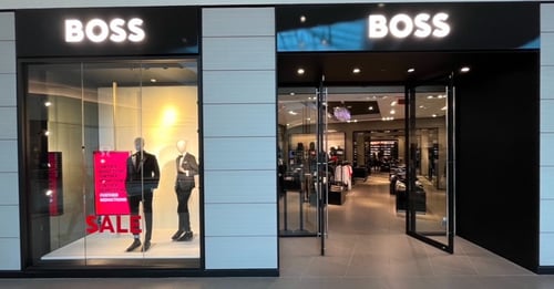 The store features premium fashion brands BOSS and BOSS Green.