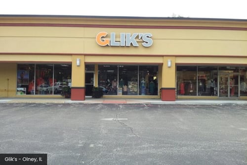 Glik's is located at 515 N West St, Olney, IL 62450, inside the Richland County Mall.