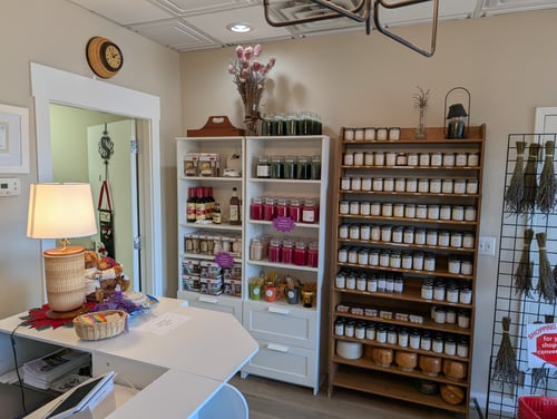 We have over 1600 lavender plants, with 12 different cultivars. We sell a vaiety of organic essential oils, as well as candles, soaps, bath salts, body wash and lotions, and Buddha Organic teas. In addition, we stock beard products and varietal honey. We have fresh lavender for cutting in June and July as well as dried lavender year round."