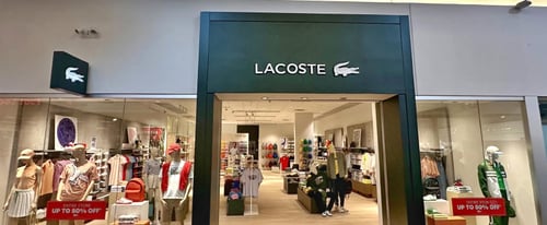Lacoste is open from 10:00 AM to 9:00 PM Monday to Saturday, and from 11:00 AM to 6:00 PM on Sunday.