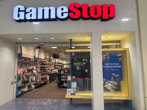 GameStop offers new and used video games, consoles, controllers, and accessories for PlayStation, Xbox, and Nintendo, including retro gaming products. They also sell trading cards like sports cards and Pokemon cards, along with gaming, anime, and pop culture merchandise.