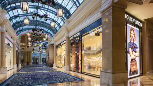 What other luxury retail stores are located near Louis Vuitton Las Vegas Bellagio Women's?