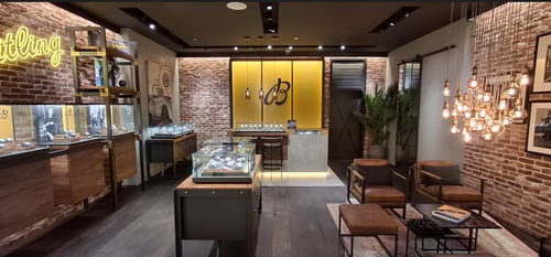 The boutique features a unique contemporary industrial loft design that offers a relaxed yet sophisticated ambiance to explore the watch collections.