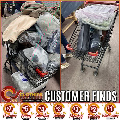 Clothing for Less make shopping for clothes and shoes affordable and easy by offering a wide assortment of the most popular brands at everyday low prices. Save today on all clothing, women’s clothing, men’s clothing, children’s clothing, youth clothing, baby clothing, shoes for all, women shoes, men shoes, children shoes, and more. We have everything you need for every day, every holiday, and every occasion at discounted prices. We sale Major chains close out and overstock at $5 Friday $4 Saturday $3 Sunday $3 Monday $2 Tuesday $1 Wednesday, and Closed for restocking on Thursday!