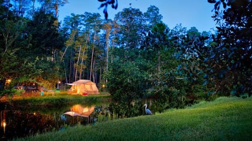 The resort offers campground sites for tents and RVs as well as cabin accommodations nearby at The Cabins at Disney's Fort Wilderness Resort.