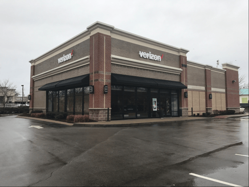 Near Verizon Business you can find Stitch & Tailor for sewing and crafts, Sprintz Furniture for furniture and mattresses, Mr Monogram for screen printing and embroidery, and FASTSIGNS for sign making services.