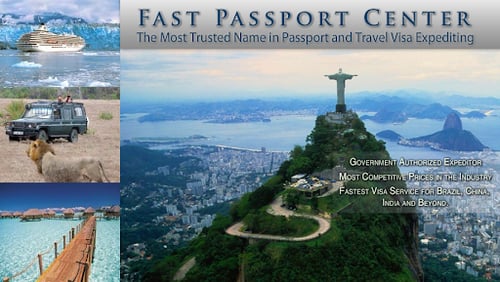 Fast Passport Center provides expedited passport and travel visa services for US citizens. We have preferred relationships with multiple passport agencies and 200 foreign embassies and consulates. This allows us to be able to process any US passport and some travel visas in as little as one day. Our extensive network allows us the ability to “Fast Track” your passport or travel visa application. We work closely with the passport agencies, embassies and consulates to ensure your passport or travel visa is processed and returned to you in time for your international departure. Our approved couriers physically walk your documents into the passport agencies, embassy or consulate, and coordinate the processing and return shipping of your pass...
