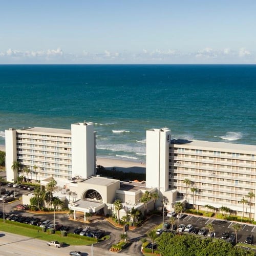 The DoubleTree Suites by Hilton Melbourne Beach Oceanfront hotel is located on A1A. We offer Florida beach hotel accommodations in a resort-style setting overlooking white sands and the Atlantic Ocean. We're located convenient to Cocoa Beach and Space Coast attractions, as well as close enough to Disney World and other Orlando theme parks for day trips and family fun. Our freshly renovated, all-suite hotel is only 10 minutes from the Melbourne International Airport, and an hour east of Orlando International Airport.