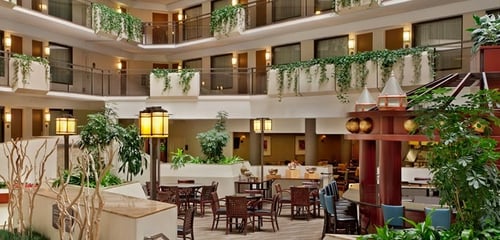 Located off I-435, the Embassy Suites Overland Park is a short five-minute drive from Corporate Woods business district, The T-Mobile headquarters, Oak Park Mall, Top Golf, and downtown Overland Park. The Royals Kauffman stadium and Arrowhead Stadium, and the Legends Shopping/KC Sporting Complex are all within a 20-minute drive. We have an indoor pool, hot tub, and state-of-the-art fitness center, Complimentary made-to-order breakfast and evening reception are included in your stay.