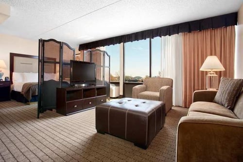 Get a restful night’s sleep in the comfy king-sized bed, relax with your favorite shows on the 37-inch TV, or keep up with work at the flexible desk. Whatever you want to do with your time here, we’ll give you the tools to do it. We also offer a range of amenities for both work and play. Swim laps in the heated indoor pool, relax in the whirlpool or keep fit in the fitness center with cardio machines and weights. Stay on top of work in our smart and professional business center, and make use of over 22,000 sq. ft. of meeting space which accommodates 5 to 500 people.
