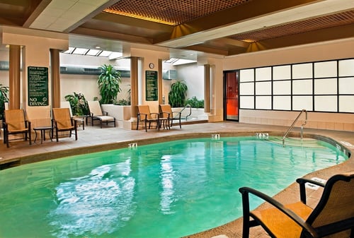 The hotel offers a fitness center for free, an indoor pool, a hot tub, and kid-friendly activities.
