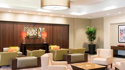 Daily Mandatory Charge includes: Experience Grand Rapids Marketing Assessment. Welcome to DoubleTree by Hilton Hotel Grand Rapids Airport, where our friendly staff will greet you at check-in with a warm, chocolate chip cookie. Enjoy a convenient location only two miles from Gerald R. Ford International Airport - easily reached via our complimentary shuttle service. Just one mile from I-96, our modern hotel offers convenient access to many Grand Rapids attractions, such as the Frederik Meijer Gardens & Sculpture Park, DeVos Place Convention Center and the Gerald R. Ford Presidential Museum. Discover restaurants, shops, businesses and vibrant nightlife just seven miles away in downtown Grand Rapids or take a day trip to Lake Michigan, only 40 minutes' drive from our hotel near Gerald R. Ford International Airport.